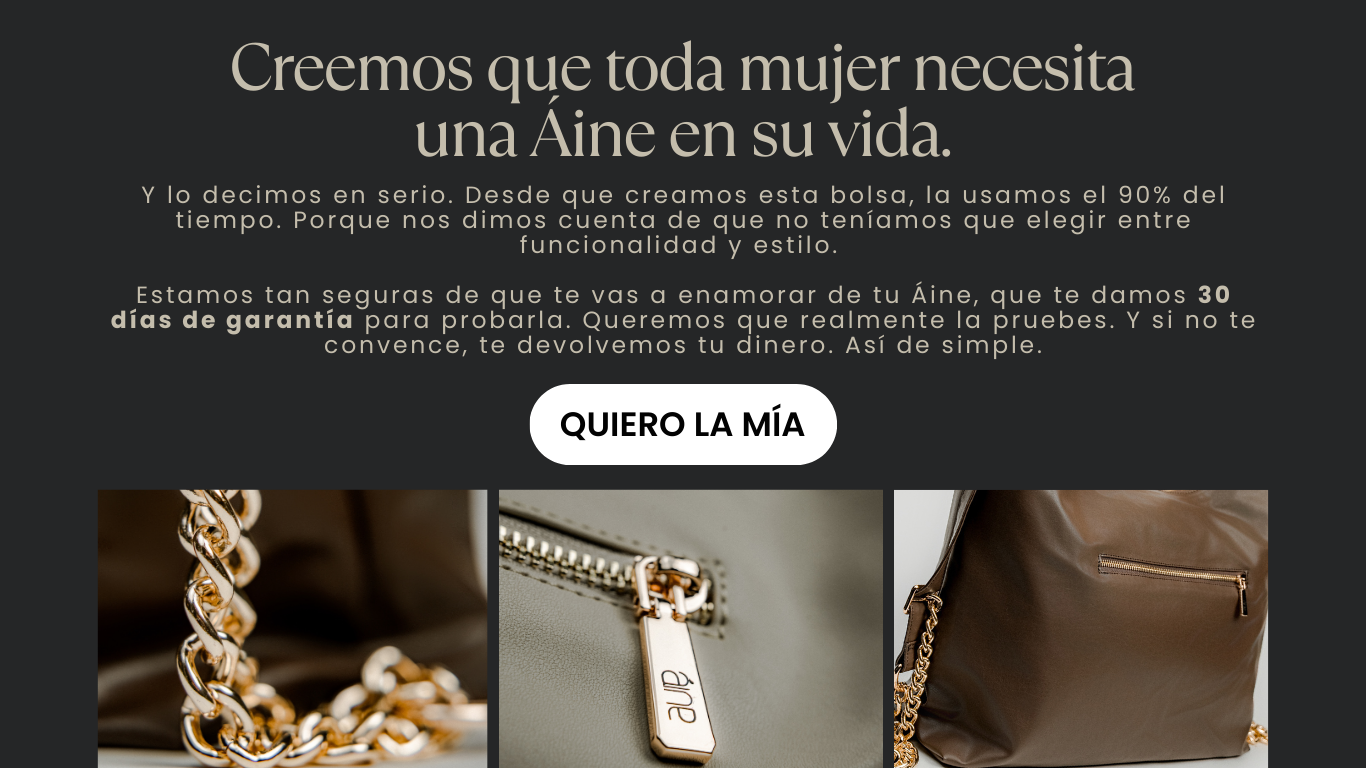 "Me encanto!! Desde el empacado hasta poder disfrutar de ella, espaciosa, moderna, el material, las costuras, los cierres, la cadena, todo muy bien !!!"