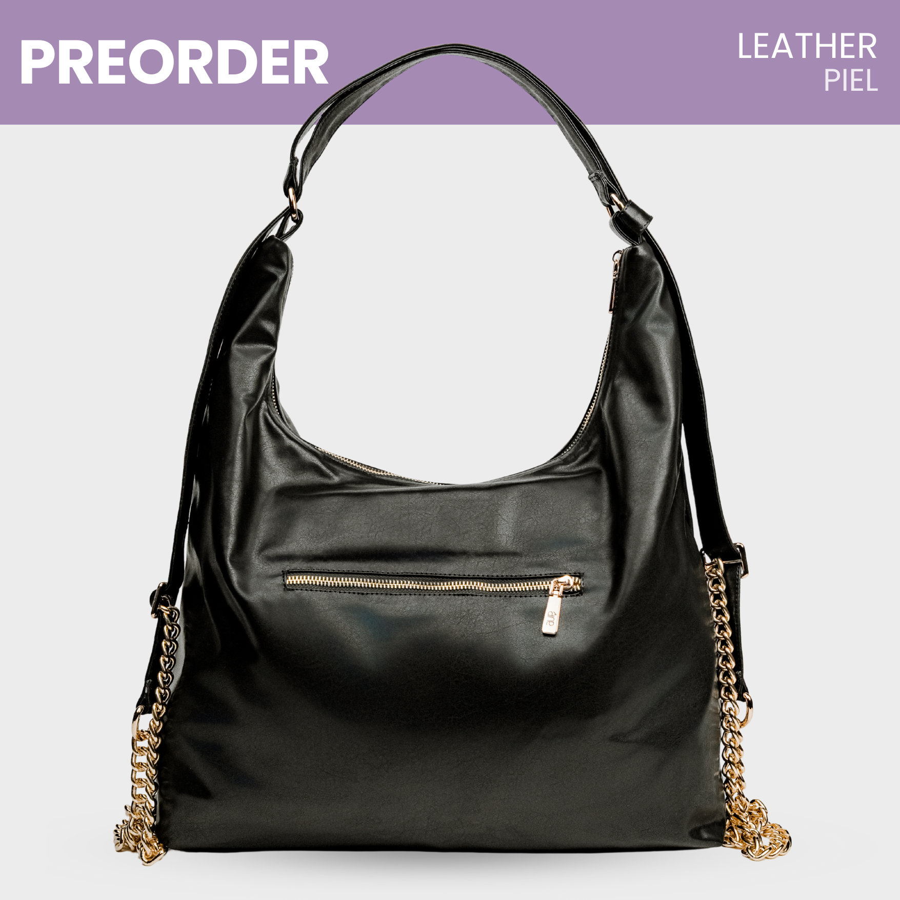 Ya puedes pre-ordenar nuestra bolsa Elena fabricada en piel genuina a precio especial por tiempo limitado. El mismo diseño convertible que te da libertad y movimiento, ahora en su versión más elevada.