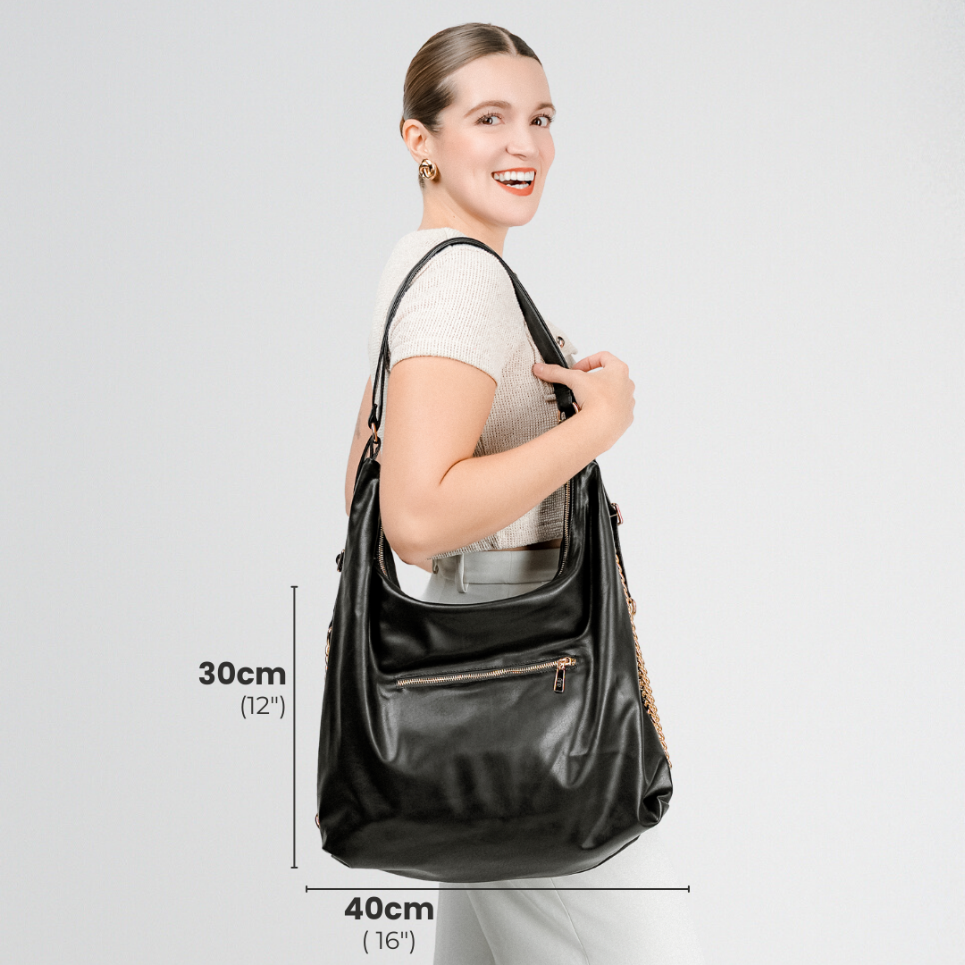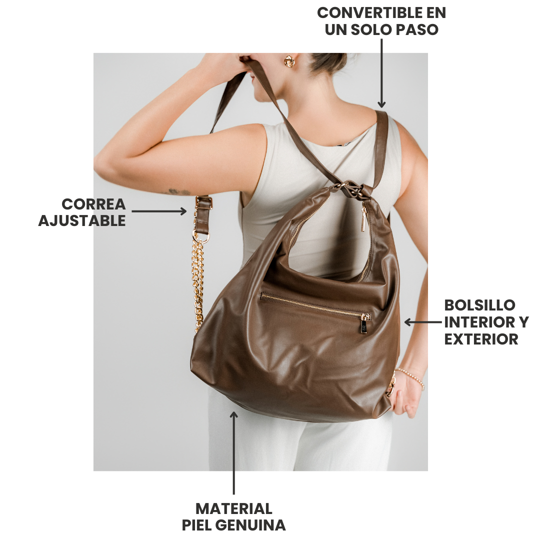 - Convertible de bolsa a mochila para llevar todo con comodidad sin perder tu estilo